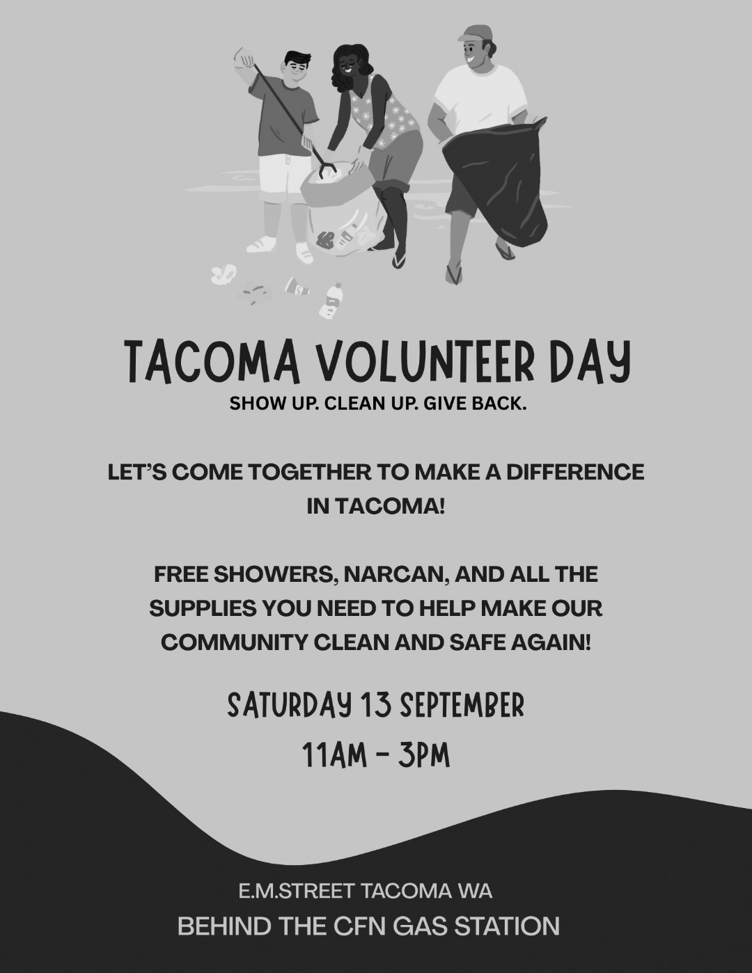“塔科马社区志愿者日”(Community Volunteer Day)旨在让塔科马居民齐心协力,共同开展城市服务和环境清理工作。参与者将通过多种志愿服务活动、美化公共空间和清洁行动,加强社区联系,提升城市环境品质。 时间:2025年9月13日(星期六)上午11:00 至 下午3:00 地点:E.M. Street (CFN 加油站后面), Tacoma, WA. 主办方:Pacific NW Bio 参与对象:各类志愿者团体、社区居民、当地企业及机构代表、塔科马市政府及合作组织成员。 活动重点内容包括: -清理受无家可归者社区影响的区域 -派发纳洛酮(Narcan)、关爱包和其他物资 -为有需要的人提供餐食和淋浴服务 举办目的:该活动旨在提升社区环境卫生与城市形象,鼓励居民参与志愿行动,增进邻里关系,为未来的城市可持续发展奠定基础,展现社区凝聚力,彰显塔科马市民的责任感与自豪感。